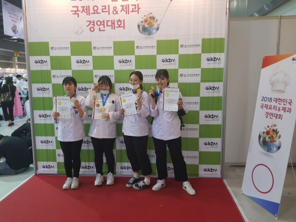 2018대한민국국제요리&제과경연대회디저트부문 전원금상수상 페이지 정보 본문 2018대한민국국제요리&제과경연대회 (1학년 이수현, 이하영, 한유량, 현민희)디저트부문 참여 전원금상수상 목록 Prev 2018 제6회 부산국제아티산페스티벌 18.11.08 List Next 2017 대한민국국제요리&제과경연대회 17.12.04