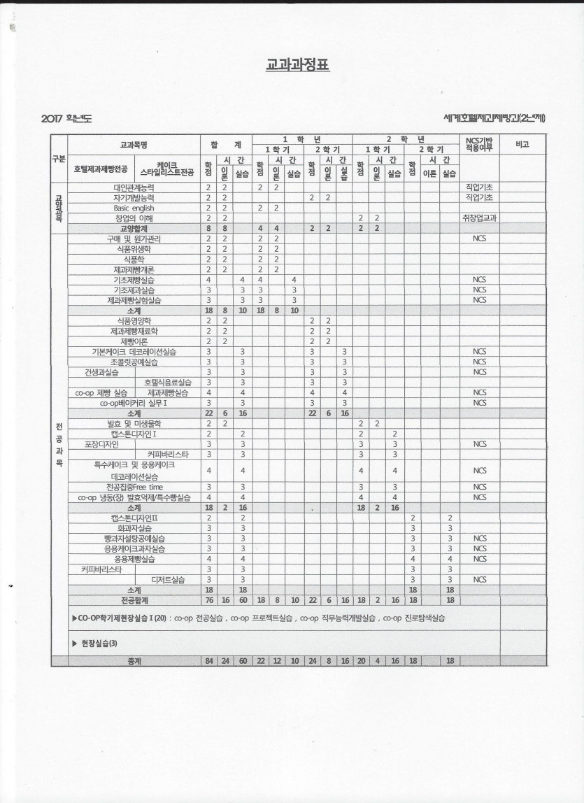 교과과정표 본문 직무능력4수준 NCS기반 및 현장중심 교육과정개발/운영평가(국가직무능력표준수준체계기준) Prev 2017년도 2학기 시간표 및 반편성표입니다 17.08.22 List Next 2017년도 1학기 시간표입니다 17.02.21